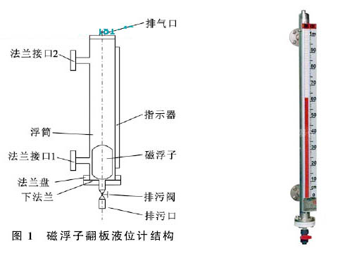 浮子式丙酸液位計是根據阿基米德定律、磁耦合原理和浮力原理設計而成的液位測量儀表m。浮子中鑲嵌磁性體,磁性體隨浮子上下移動,外部的指示部件感應到磁體的移動,從而指示出液位的變化。磁浮子翻板液位計結構見圖。