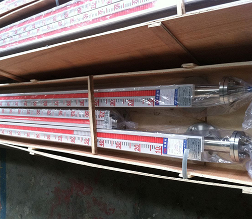 在管體的另一側可按用戶需要加裝電遠傳變送器,將液位高度轉換成標準電流信號輸出,以供液位信號輸出,以供液位信號遠傳至二次儀表進行指示控制與檢測。